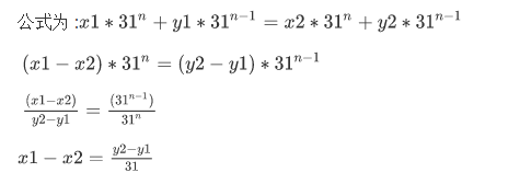 31*31(n-1)+str.charAt(0)*31(n-2)+str.charAt(1)*31(n-3)+...+str.charAt(n-1)