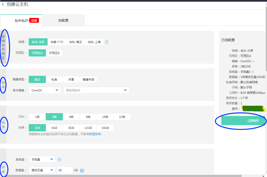 然后我们就可以进去付费创建一个云主机自己使用,就像下面这样: