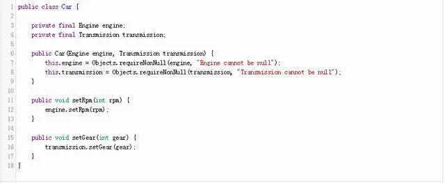 使用本标准方法,我们的代码的目的是更清晰:商店提供的Engine和Transmission如果他们不是null对象。 的requireNonNull方也足够灵活,允许一个定制的消息提供密切的表妹,requireNonNullElse,可以为其提供一个默认值。 的requireNonNullElse