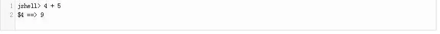 一旦jshell>提示,我们可以输入任何可执行Java语句和看到它的评价。 注意单个语句不需要分号之后,虽然他们可以包含(如果需要的话)。 例如,我们可以看到Java和4和5 jshell使用下面的命令: