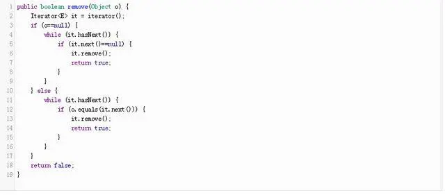 我们也可以获得大量的信息关于一个特定类通过观察它的实现工作。 例如,假设我们关心的是如何Collection删除一个元素使用AbstractCollection#remove(Object)方法。 而不是猜测实现,我们可以直接到源和实现(如下描述)。