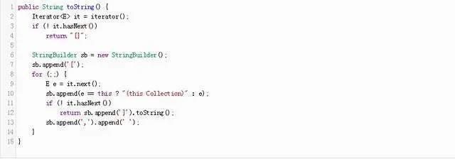除了看到特定的方法是如何工作的,我们还可以看到一些最经验丰富的Java开发人员编写的代码。 例如,我们可以看到如何有效地通过查看连接字符串AbstractCollection#toString方法: