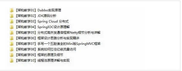 最后给大家分享我自己收集的架构学习资料,关注我,回复“JAVA”即可获取以下学习资料: