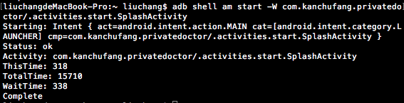 可使用命令 adb shell am start -W packagename/activity 查看 App 启动耗时,查看了一下我们自己的 App Android 版本的启动耗时如下: