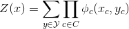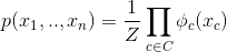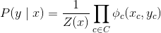 在多数实际应用中,我们进一步假设,因子ϕc(xc,yc)形式为: