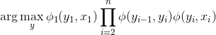 更正式地说,假设p(y|x)是一个链式 CRF,具有两种类型的因子:i = 1, ..., n的图像因子ϕ(xi,yi),它赋予与xi一致的yi更高的值 - 以及i = 1, ..., n-1的成对因子