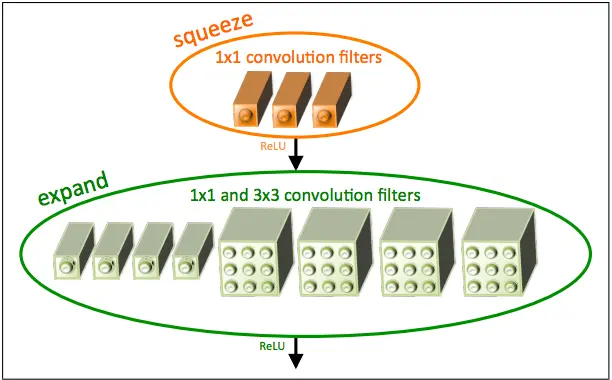 # Squeeze part of fire module with 1 * 1 convolutions, followed by Relu