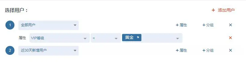 选择用户组后,依旧可以选择用户属性筛选,对该群用户进行简单的筛选