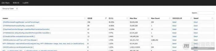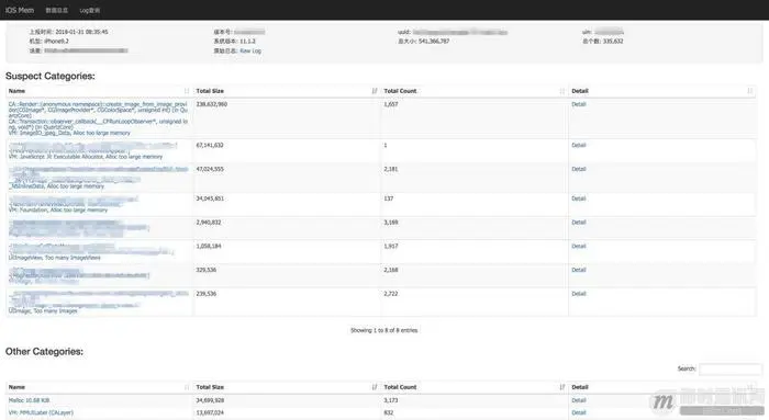 为了突出问题,提高解决问题效率,后台先根据规则找出可能引起FOOM的Category(如上面的Suspect Categories),规则有: