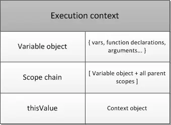 对于每个Execution Context都有三个重要的属性,变量对象(Variable object,VO),作用域链(Scope chain)和this。这三个属性跟代码运行的行为有很重要的关系,下面会一一介绍。