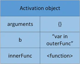 当上面的例子开始执行outerFunc的时候,就会有一个outerFunc的AO被创建: