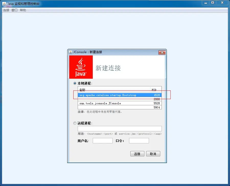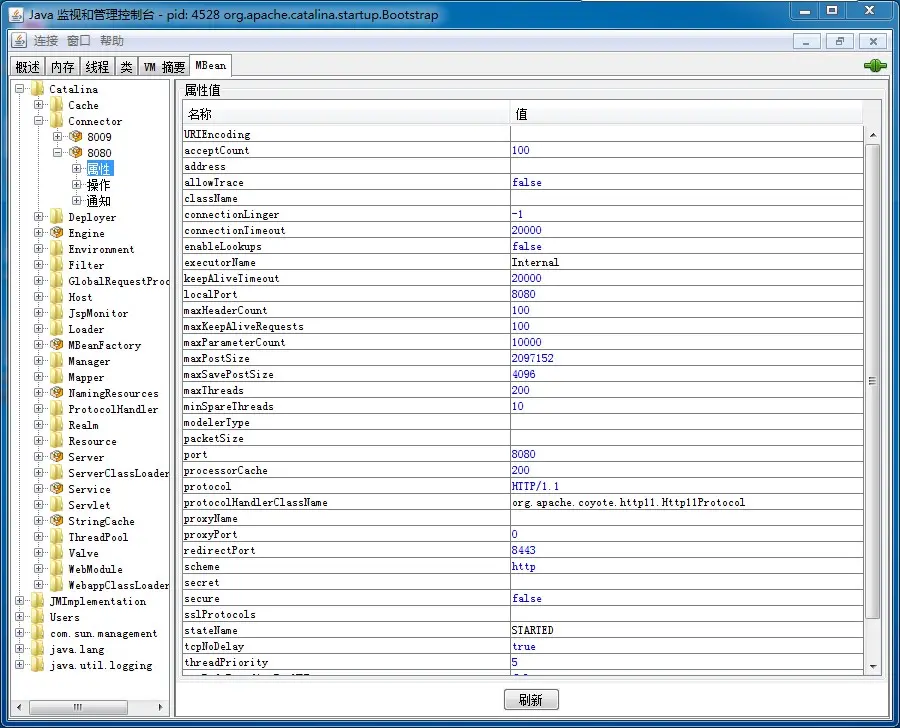 先来看下 Tomcat 7里由 JMX 提供的管理功能,在 Tomcat 启动完之后可以用 jconsole 来访问: