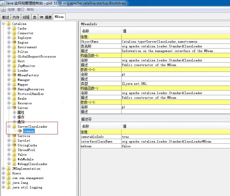 它实现了一个StandardClassLoaderMBean 接口。从这里就可以看出最上面的代码mBeanServer.registerMBean中注册的实际上就是一个Standard MBean。只是这个标准 MBean 很没意思,一个方法都没开放出去管理,所以 jconsole 里只能看到 MBean 的描述信息,看不到它的属性、方法: