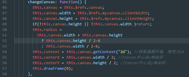 - changeCanvas方法主要使用来大小屏互换,视图大小变化canvas自适应