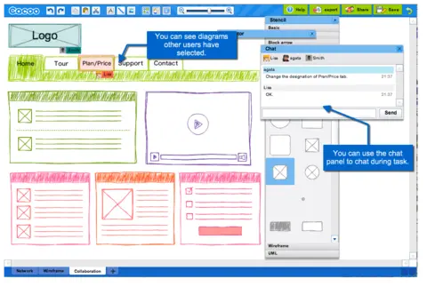 Cacoo也是一个在线的网络画图工具,运用它可以制作多种图表,例如Site maps、Wireframes、Flow Fharts、Mind、UML等等,它跟LucidChart非常的类似,也支持多人协作。除了基础的模板之外,Cacoo还推出了一个模板商店,用户可以自己上传一些模板到商店里,而且大多数模板也是免费的。除此之外,Cacoo的图表可用矢量格式导出(例如PDF,SVG等),导出的图表可打印或用其他绘图工具(如Adobe Illustrator)进行再编辑,不过这些功能仅在付费版本中才提供。