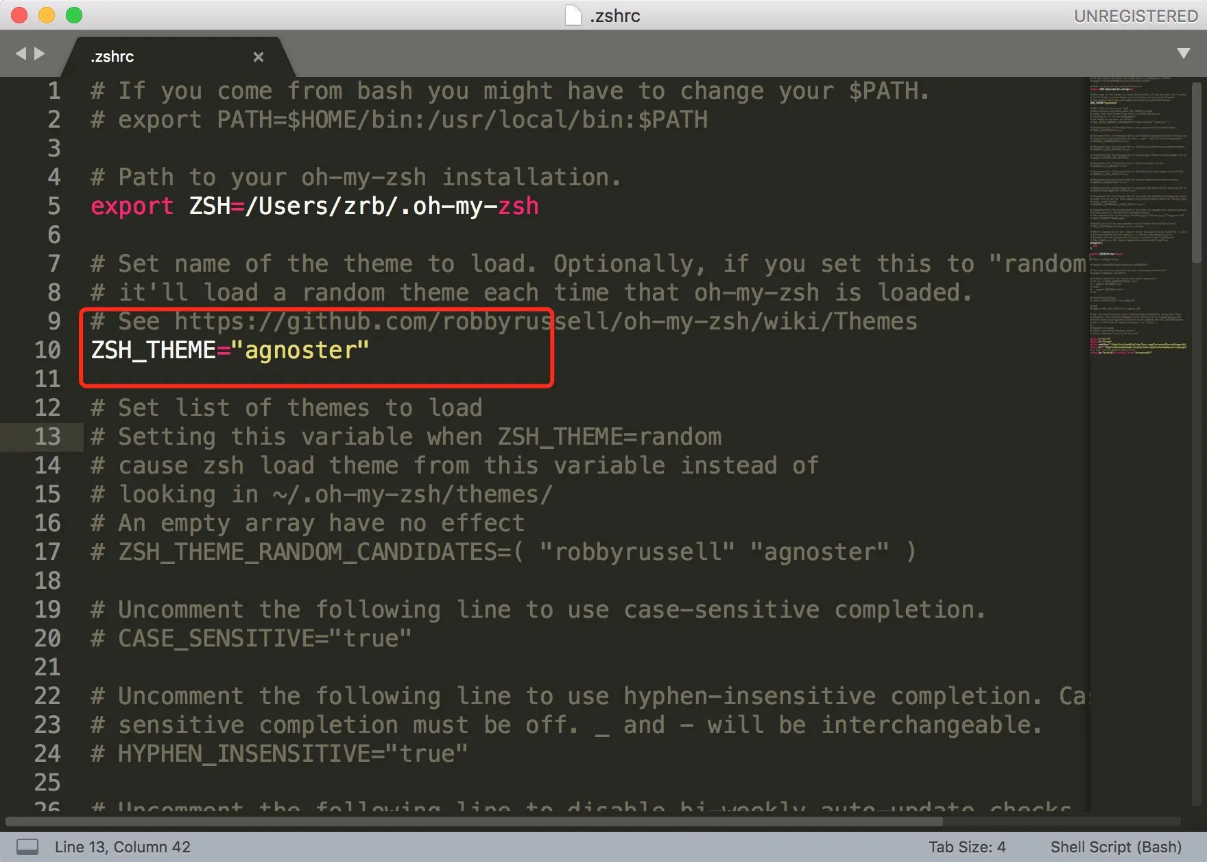 vim ~/.oh-my-zsh/themes/agnoster.zsh-theme