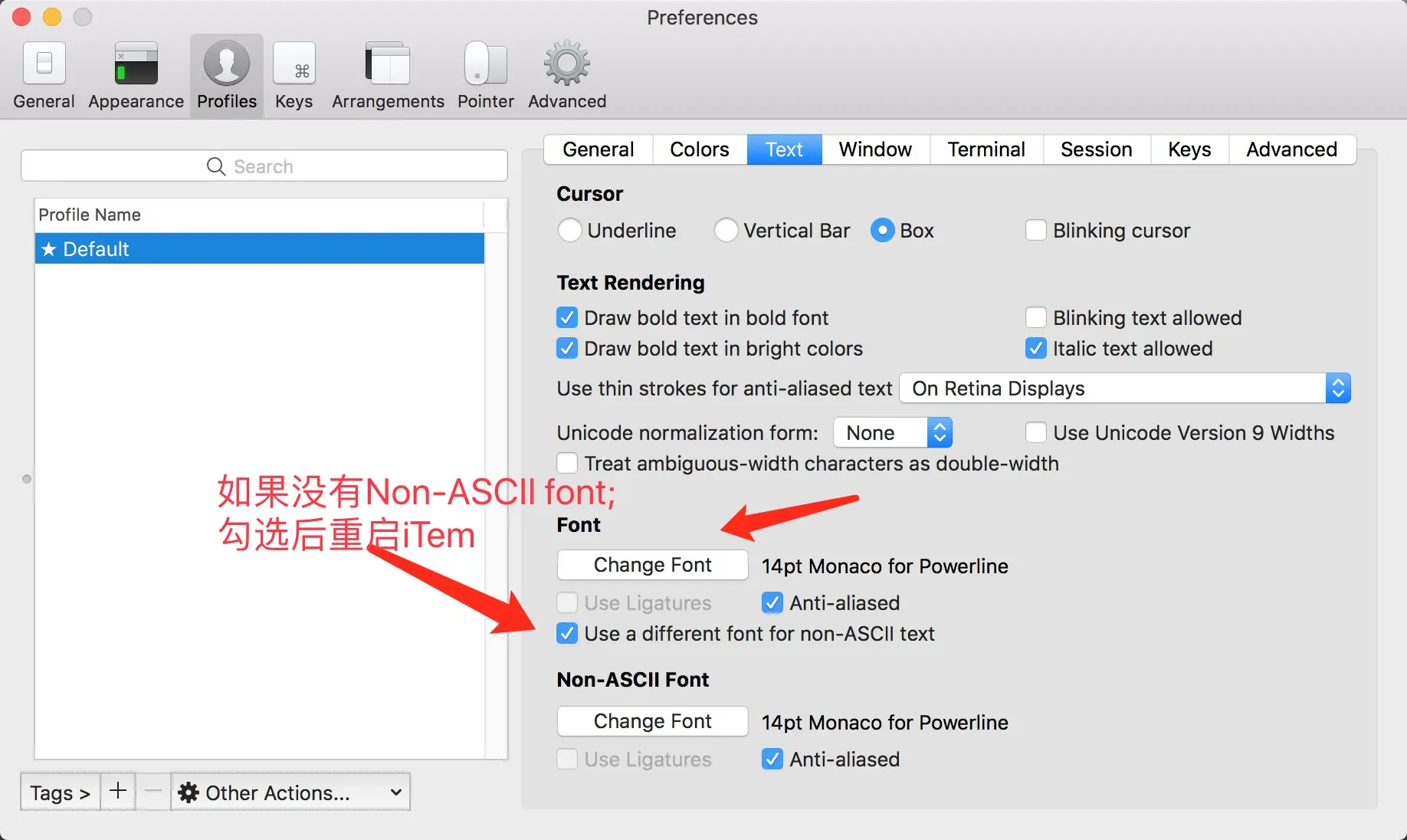 curl -L https://github.com/robbyrussell/oh-my-zsh/raw/master/tools/install.sh | sh进行安装 - Monaco Powerline解决部分字符的乱码问题。