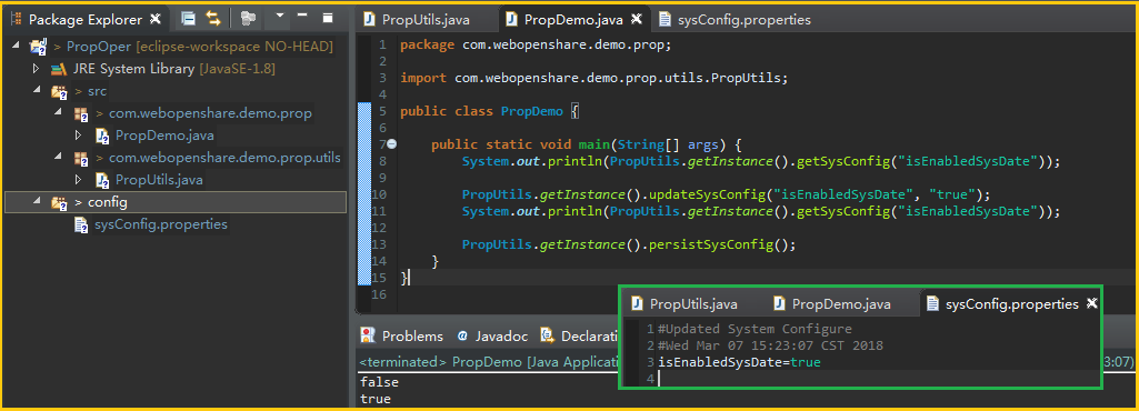 java自带了java.util.Properties类,用于读写Properties文件,如下代码所示: