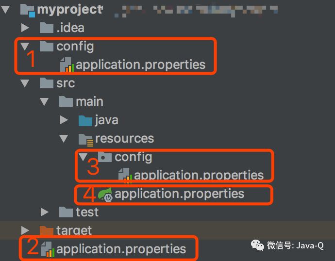 以上对application.properties文件的使用都是基于在classpath根路径下,即将application.properties文件放在resources目录下。Spring Boot支持从以下位置加载application.properties文件: