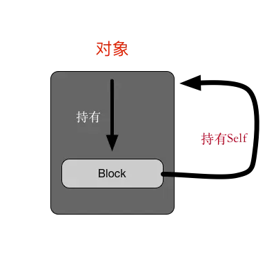 #### Blocks循环引用 *** Blocks循环引用是什么原因造成的呢?Blocks循环引用跟我们前一篇博客中说的自己引用自己的情况差不多.如下图所示.