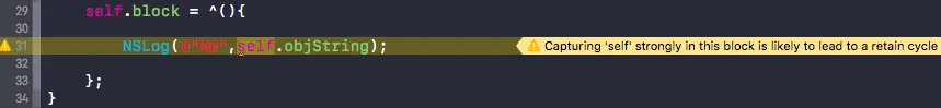 那么解决方案也是跟前一篇博客说的那样,直接使用__weak修饰符.如下所示.