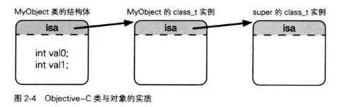 在Objective-C中,任何类的定义都是对象。类和类的实例(对象)没有任何本质上的区别。任何对象都有isa指针。