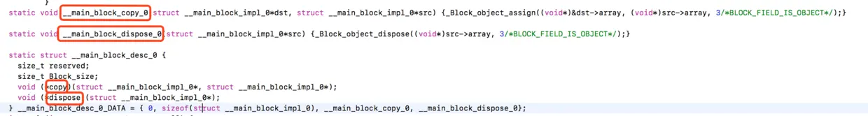 } __main_block_desc_0_DATA = { 0, sizeof(struct __main_block_impl_0), __main_block_copy_0, __main_block_dispose_0};