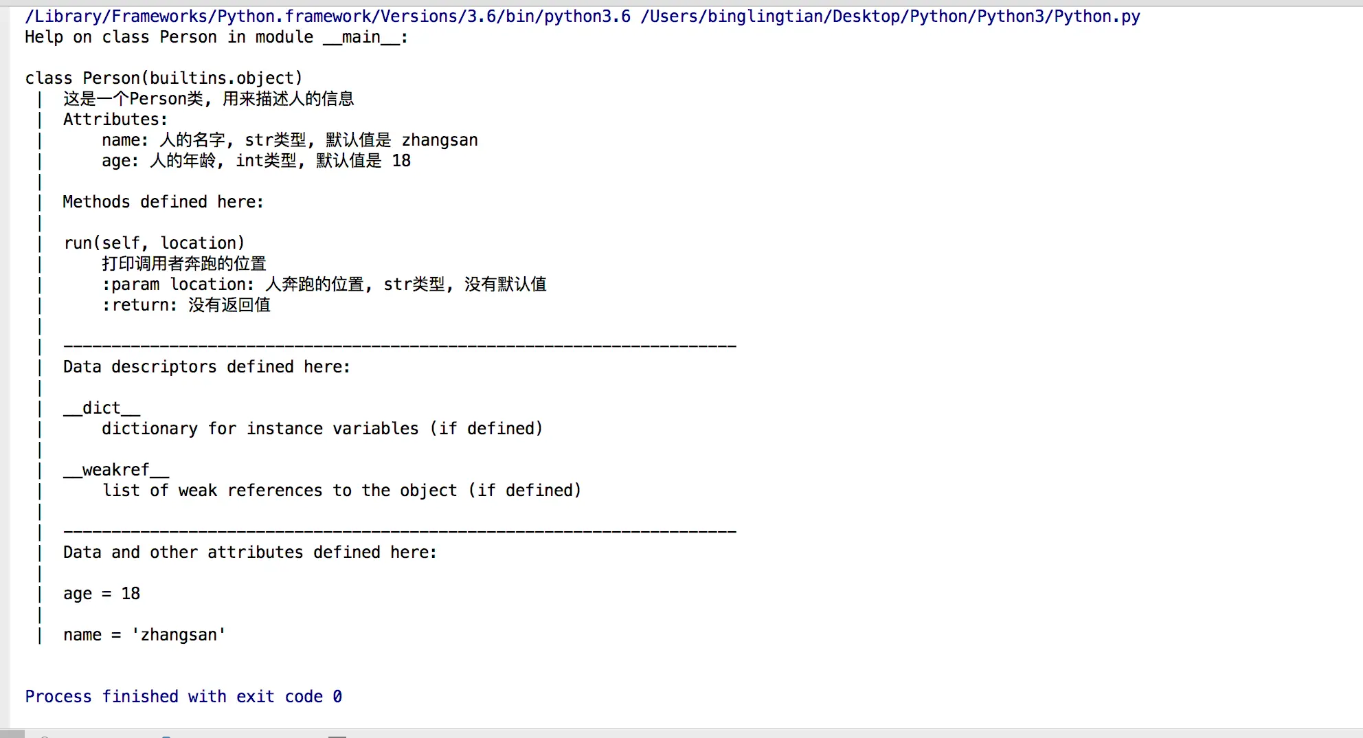 name: 人的名字, str类型, 默认值是 zhangsan