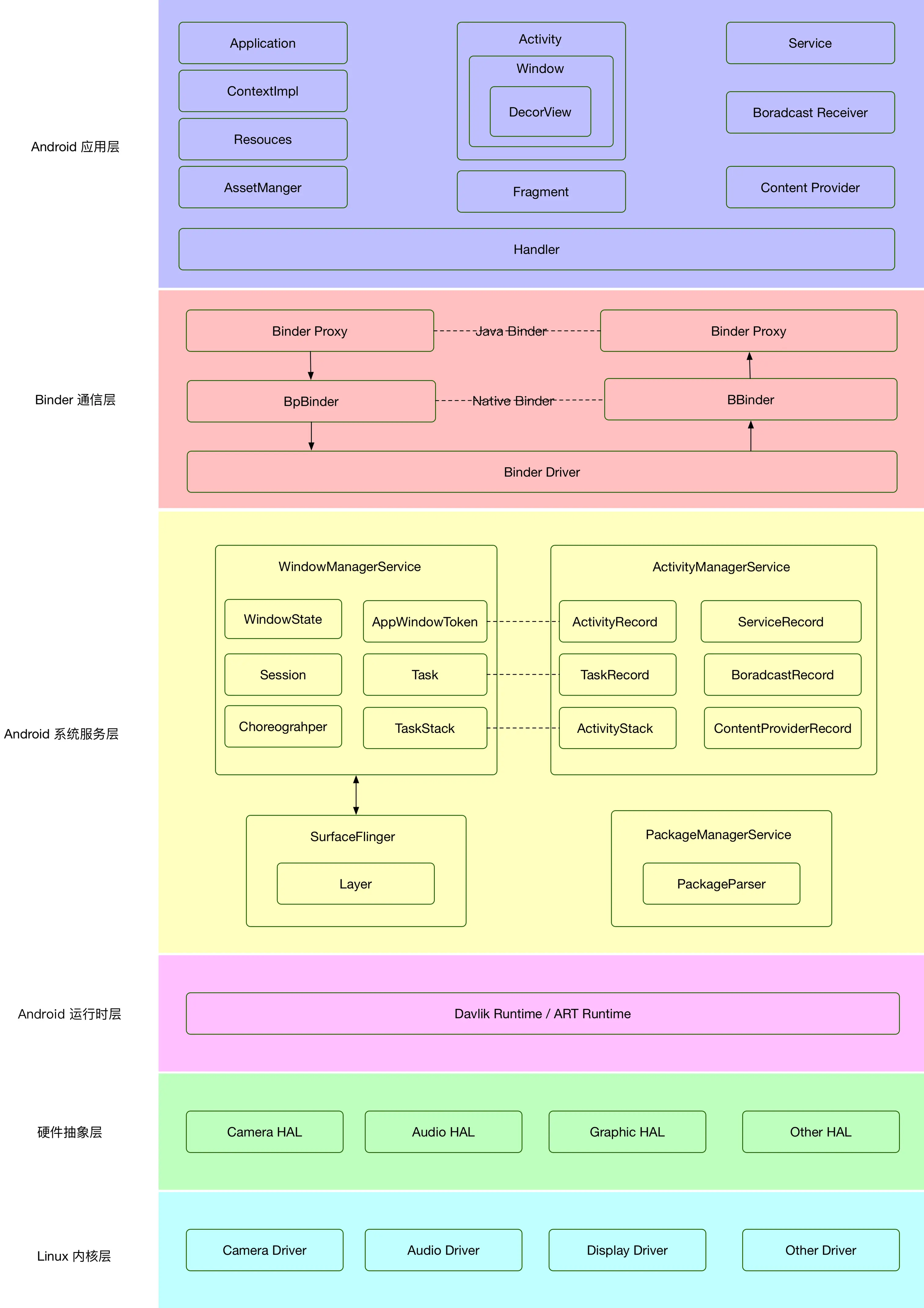 - 要善于去粗存精,Android Framework也是人写的,有精华也有糟粕,并不是每行代码你都需要问个为什么,很多时候没有那么多为什么,只是当时那种情况下就那样设计了。但是 对于关键函数我们要去深究它的实现细节。