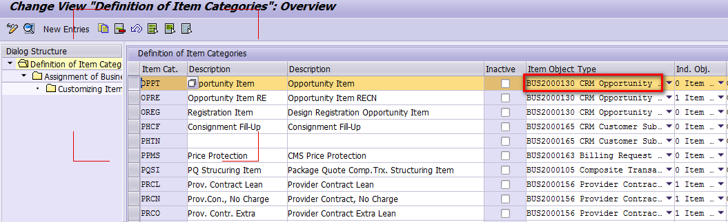 在我的例子里,我创建的Opportunity的Transaction type为OPPT,我插入行项目的Product "JerryWang"上维护的item category的值为NORM。因此按照上图的配置,会自动带出OPPT - Opportunity Item。而OPPT对应的object type BUS2000130维护在如下配置里: