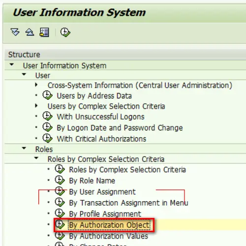 使用事务码SUIM根据权限对象查询PFCG角色: