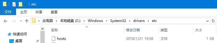 (3)、进入路径 C:\Windows\System32\drivers\etc\文件下,打开 hosts 文件