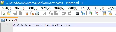 (4)、将“ 0.0.0.0 account.jetbrains.com ”添加到hosts文件,屏蔽掉Pycharm对激活码的验证。(注意:这里必须确认内容添加后保存成功,否则后面的注册码会提示失效)