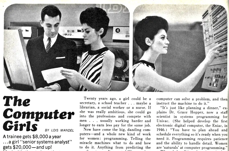提到「现在耀眼的大计算机来了,一起到来的还有女性的新职业:编程。」