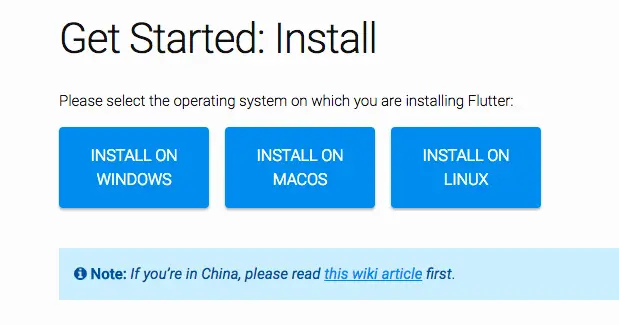 首先此处有个温馨小点 , 谷歌为中国开发者准备了国内镜像,为图中的链接 this wiki article . 主要是配置两个环境变量 PUB_HOSTED_URL 和 FLUTTER_STORAGE_BASE_URL , 安装时当检测到有这俩环境变量,就会优先读取变量存储的地址去安装.