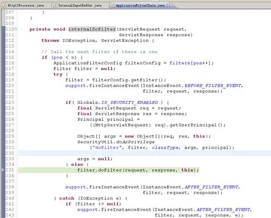其实请求一直执行到这里,才算是跟struts2搭上关系了,跟踪这个doFilter一直到internalDoFilter方法,如图