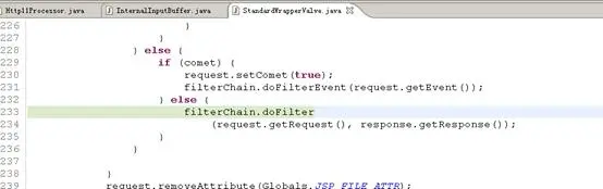 在这之后便是tomcat从connector到servlet处理HTTP请求的流程,http请求会依次进入engine、host、wrapper这里具体代码流程就不贴了。一直到最终关联servlet,实际上这里关联的就是struts2,如图