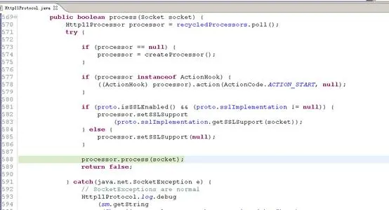这里要重点说一下,processor是HttpProcessor的一个实例,事实上tomcat对HTTP请求的解析都是通过HttpProcessor这个类中的process()这个方法实现的。跟入process()这个函数,可以看到实际上它就干了四件事儿,如下