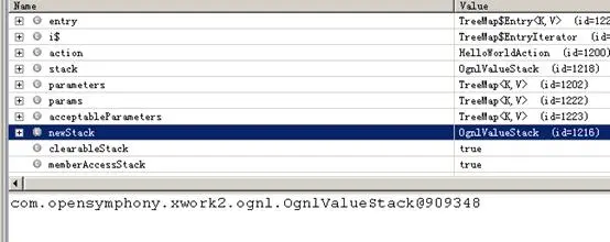 这里newStack是从OGNL上下文中取出的ValueStack,保存的是action的实例