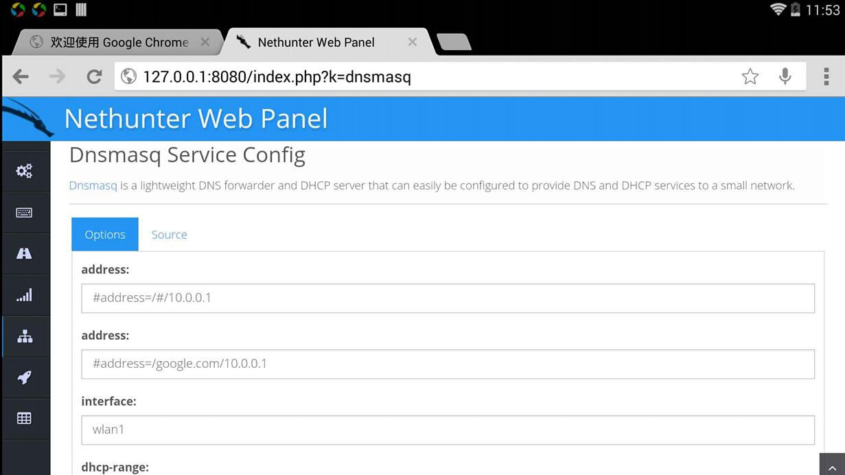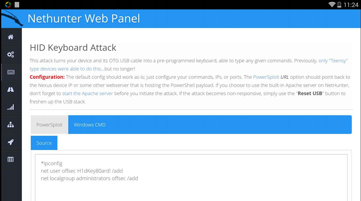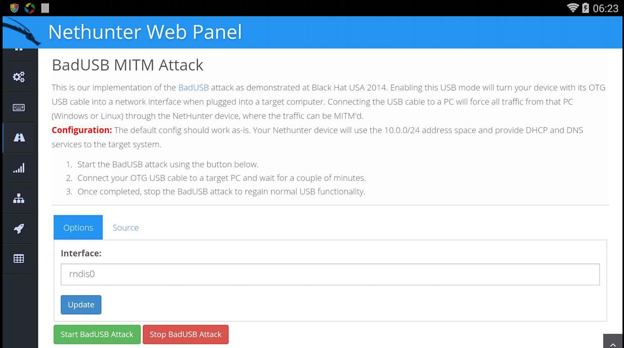 恶意USB中间人攻击:将装有nethunter的设备接入受害者电脑,执行此攻击可以劫持受害者流量。