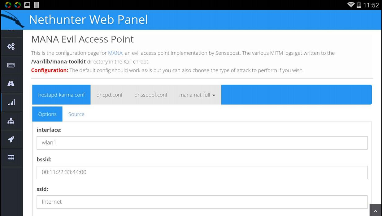 Mana伪造ap,dnsmasq,hostap,wifite(网卡原因,有关无线的实验未成功,感觉得有sim卡才行)