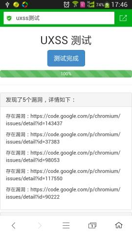 近段时间android UXSS漏洞持续性爆发涉及android应用包括主手机流浏览器、聊天软件等。下面截取几个案例。
