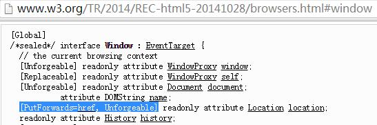 事实上,在最近封稿的 HTML5 标准里,已非常明确了 location 的地位 —— Unforgeable。