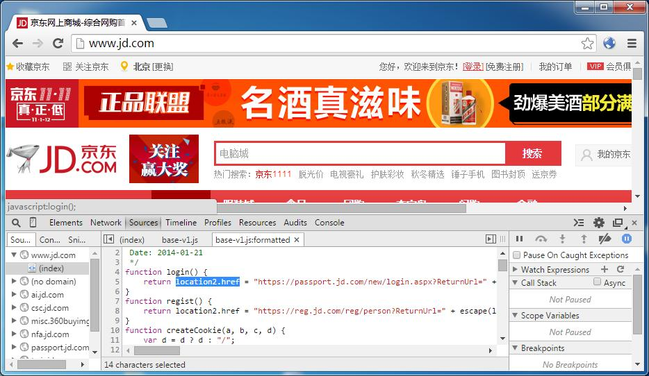 上一篇文章里提到京东登录,就是通过脚本跳转的。我们首先就拿它测试: