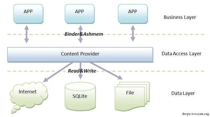 内容提供器用来存放和获取数据并使这些数据可以被所有的应用程序访问。它们是应用程序之间共享数据的唯一方法;不包括所有Android软件包都能访问的公共储存区域。Android为常见数据类型(音频,视频,图像,个人联系人信息,等等)装载了很多内容提供器。你可以看到在android.provider包里列举了一些。你还能查询这些提供器包含了什么数据。当然,对某些敏感内容提供器,必须获取对应的权限来读取这些数据。