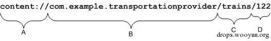 content URI 是一个标志provider中的数据的URI.Content URI中包含了整个provider的以符号表示的名字(它的authority) 和指向一个表的名字(一个路径).当你调用一个客户端的方法来操作一个provider中的一个表,指向表的content URI是参数之一.