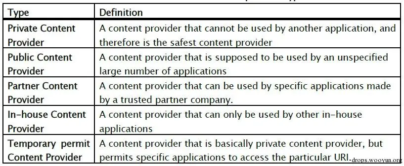 0x02 content provider 分类