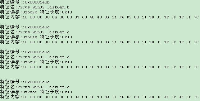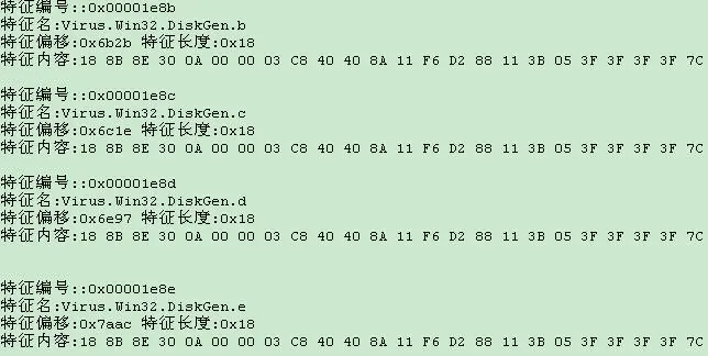 TAV查杀Virus.Win32.DiskGen病毒从a变种到最后的an变种,多次匹配了这条特征: