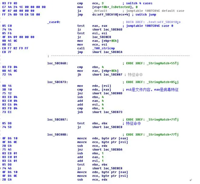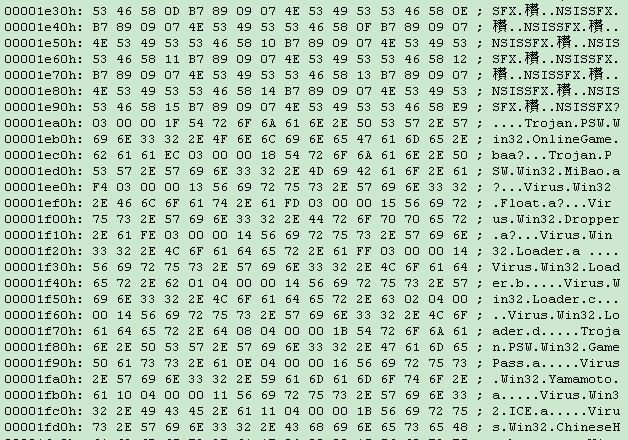 a). 二进制全文匹配。(二进制特征存放在virpe01.def库解密后的tbl5中)