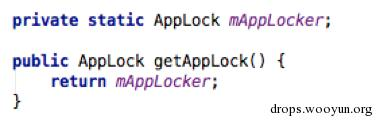 可以创建一个AppLockImpl的实例,但是为了节约内存我们直接调用已有的.分析发现AppLockImpl被调用在LockManager的getAppLock()中,这个就仅仅返回了AppLock对象.而AppLock是抽象类AppLockImpl的具现.